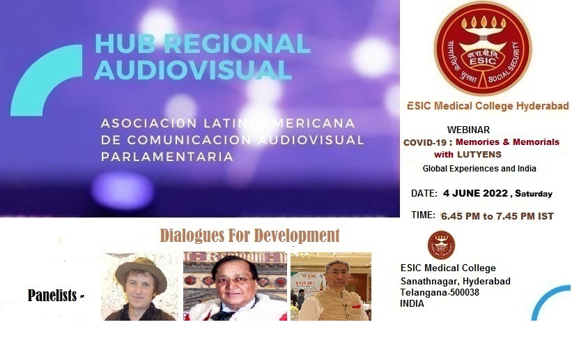 The Audio-Visual Regional Hub of the Asociación Latinoamericana de Comunicación Audiovisual Parlamentaria, ALCAP, or the Latin American Parliamentary Association of Audio-Visual Communication, along with the ESIC Medical College, Hyderabad will have its Dialogues for Development webinar on Saturday, 4 June 2022 from 6.45 PM Indian Standard Time.