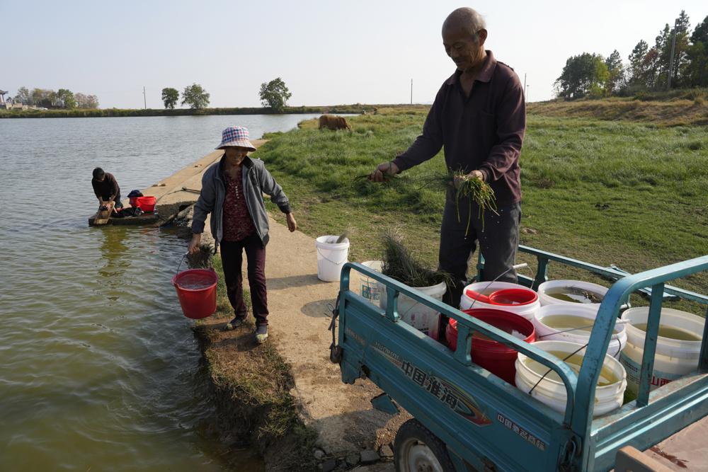 In the village of Tangtou, on the lake’s normally water-blessed northeast corner, residents scooped buckets of water from a village pond to tend their vegetables.