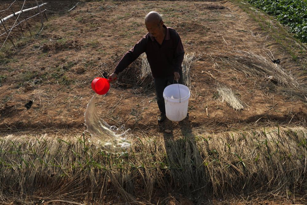 “The whole lake was completely dry, and even the Yangtze River was dry,” said 73-year-old Duan Yunzhen, as he scattered pond water onto his crops.