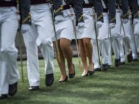 United States Military Academy graduating cadets march to their graduation ceremony of the U.S. Military Academy class 2021 at...