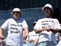 Fans are seen Tuesday wearing T-shirts asking about Chinese tennis player Peng Shuai before a match at the Australian...