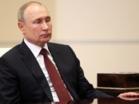 Russian President Vladimir Putin listens to Constitutional Court Chairman Valery Zorkin during their meeting at the Novo-Ogaryovo residence outside...