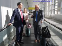 El embajador designado Judd (a la derecha), a su llegada al aeropuerto internacional Arturo Merino Benítez El nuevo embajador...