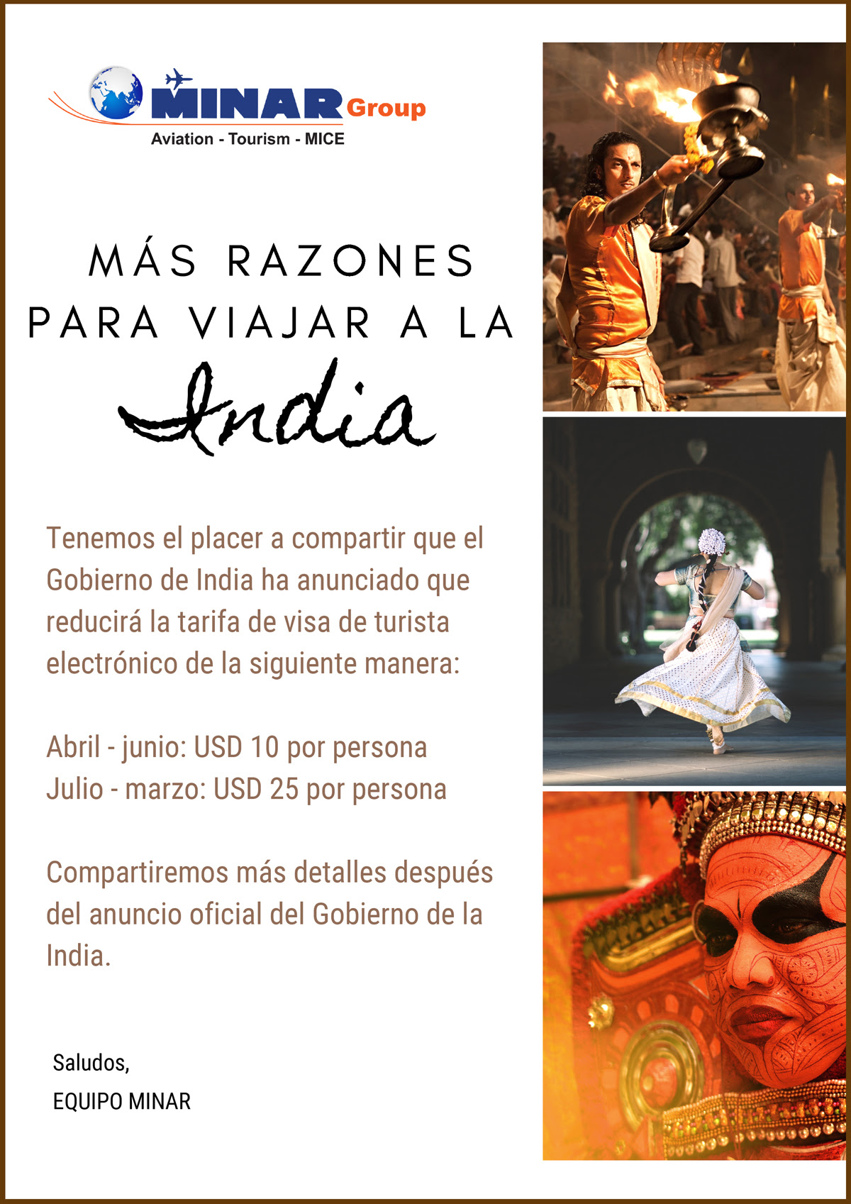 Como promoción el gobierno de India, baja a USD$25 la VISA de Turista de julio de 2019, a marzo de 2020