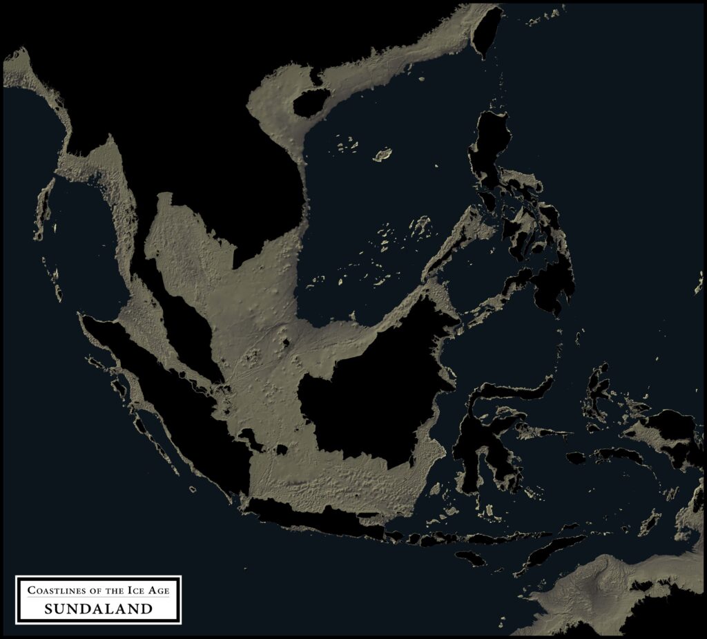 En el sudeste asiático se encontraba Sondalandia o la Región de la Sonda. Estaba conformada principalmente por las islas mayores de la Sonda (Borneo, Java y Sumatra, con la excepción de las Célebes). También Bali y la península de Malaca formaban una gran península durante la Edad de hielo.