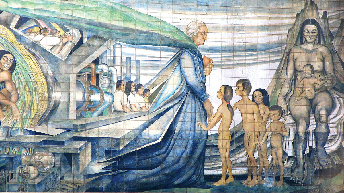 Mural del artista chileno, Fernando Daza Osorio, Homenaje a Gabriela Mistral, Cerro Santa Lucia (Cerro Huelén) 1970 pintado a mano en 100 placas cerámicas y cocidas en Fanaloza, por sus trabajadores a 1000 grados Celsius de temperatura. Inaugurado en 1970 junto al Alcalde de Santiago Alberto Fernández