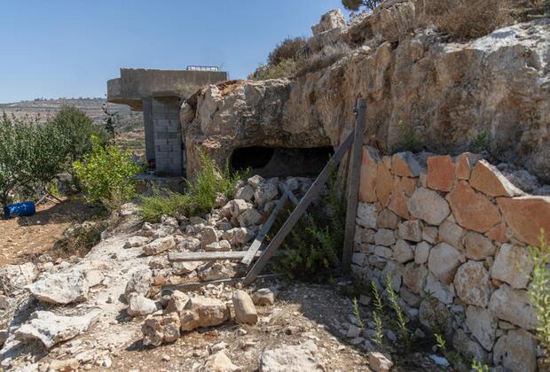 Palestinians inspect a bloodstained site after an Israeli army operation that left some Palestinian men killed, in the West Bank village of Beit Anan, west of Ramallah, Sunday, Sept. 26, 2021. Multiple Palestinian gunmen were killed in shootouts with Israeli security forces during a sweeping West Bank arrest operation cracking down on the Islamic militant group Hamas on Sunday, the Israeli military said. September 27, 2021