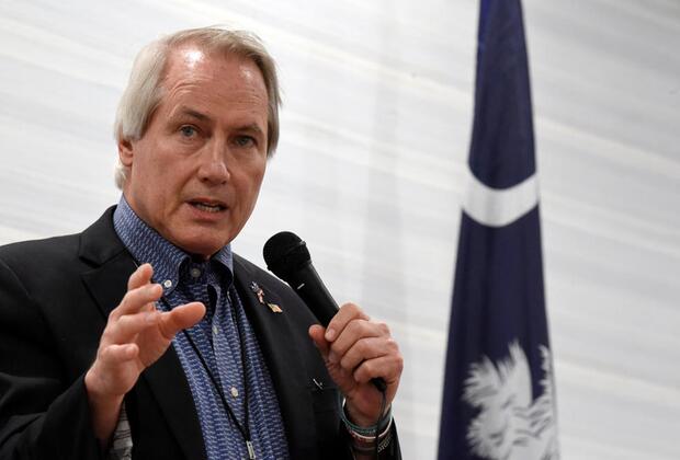 Pro-Trump attorney L. Lin Wood, a candidate for chairman of the South Carolina Republican Party, speaks to attendees of the Richland County GOP convention in Columbia, S.C. A federal judge is considering whether to order financial penalties or other sanctions against some of former President Donald Trump’s lawyers, including Wood, who signed onto a lawsuit last year challenging Michigan’s election results. July 12, 2021